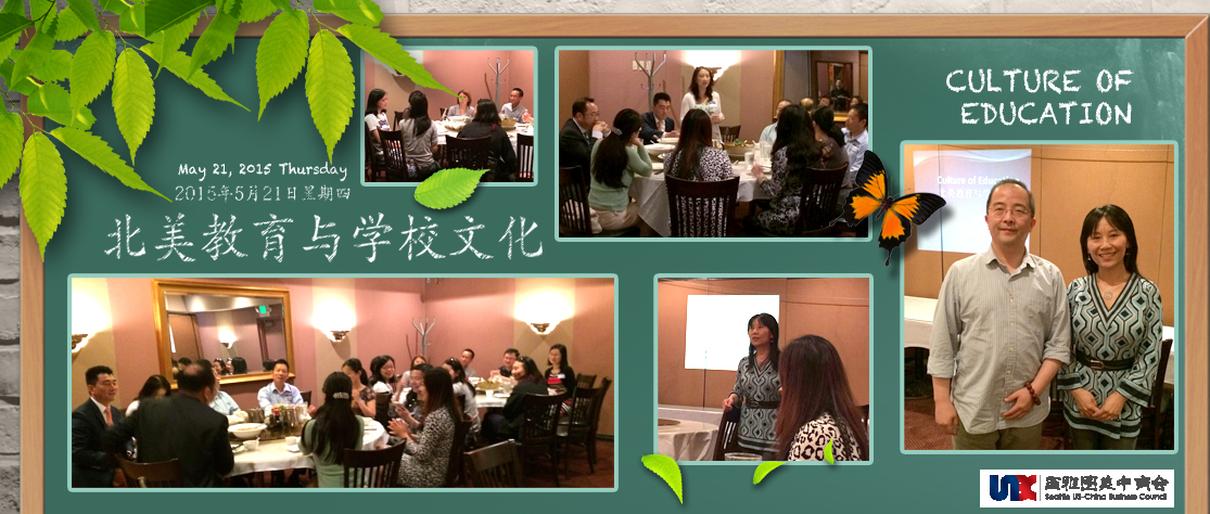 2015 年5月21 日 周四午时,西雅图中美商会在Issaquah 举办了2015年5月的商会午餐会活动,主题是北美教育结构和学校文化。对于教育的重视中国自古以来就有很多典故,其中广为知晓的就是“孟母三迁”;现代社会对于教育的研究、讨论、学习交流更深入到每个家庭和每个父母的日常生活中。对于移居美国的多数家庭而言,我们大都是21世纪的孟母,为了给孩子提供更好的教育、更好的环境、更好的生活,来到了美国,来到了西雅图。